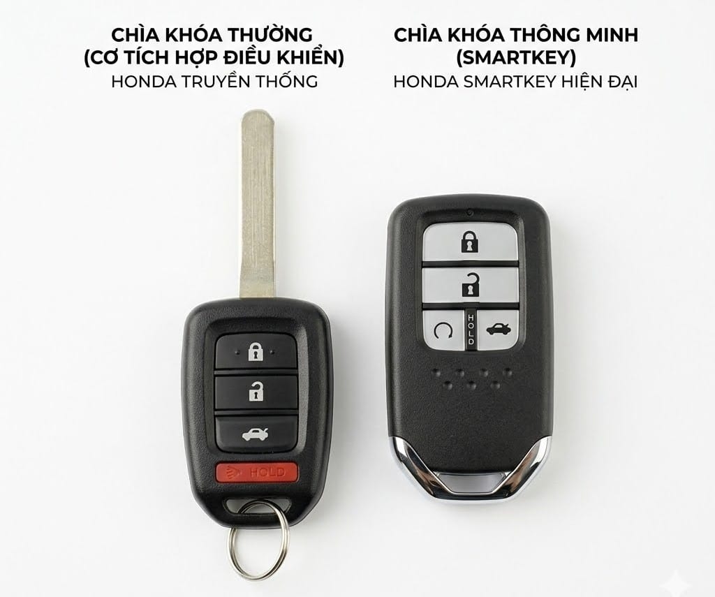 Remote thường và smartkey Honda có cấu tạo khác nhau